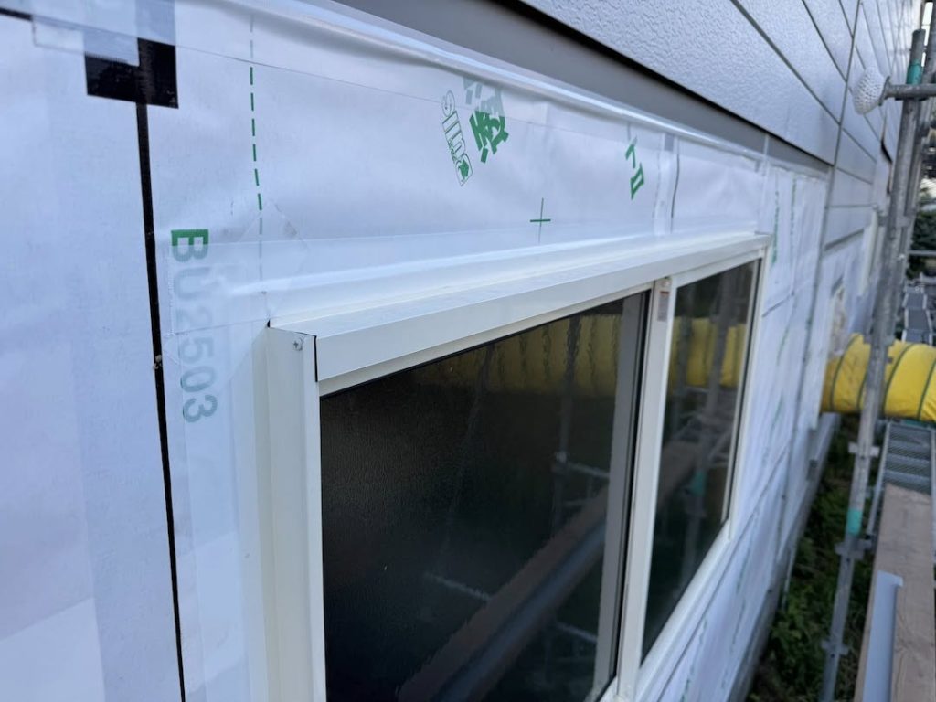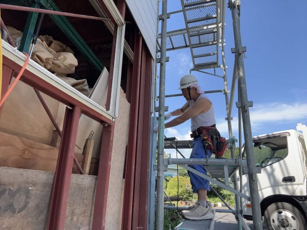 朝一より、外装の 仕上げ部材の 取付け