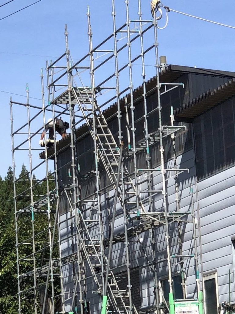 雪害工事現場 にて、屋根材の 交換施工 を