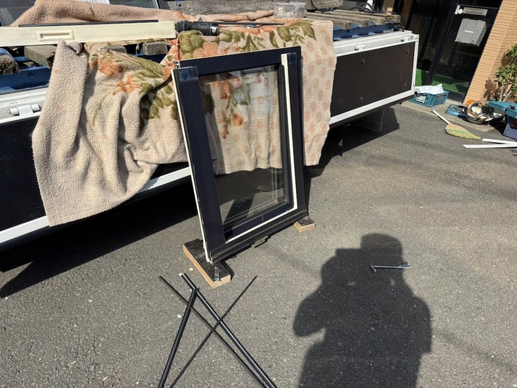 外部、ガラス交換施工。