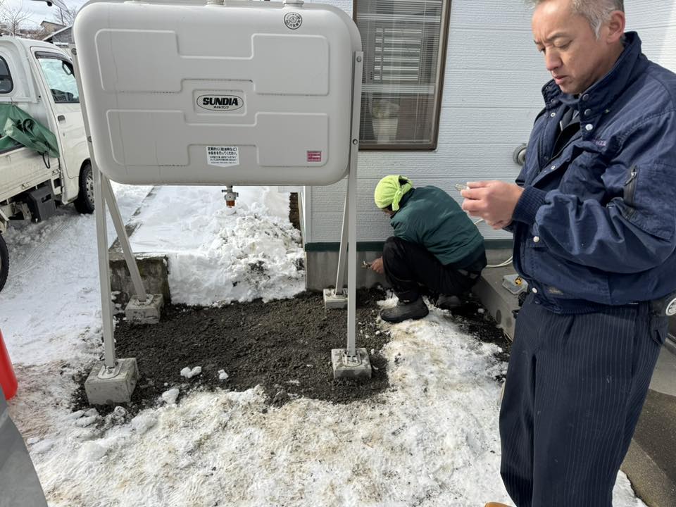 K様邸では、朝一より ホームタンクの 取付