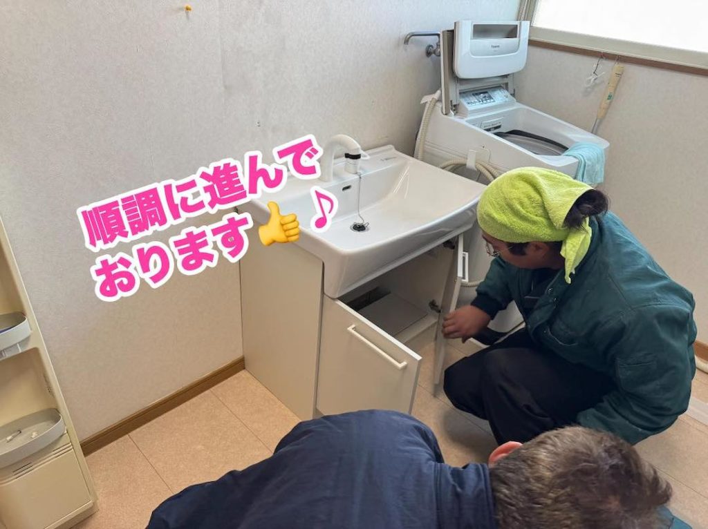 洗面化粧台の 交換作業〜。
